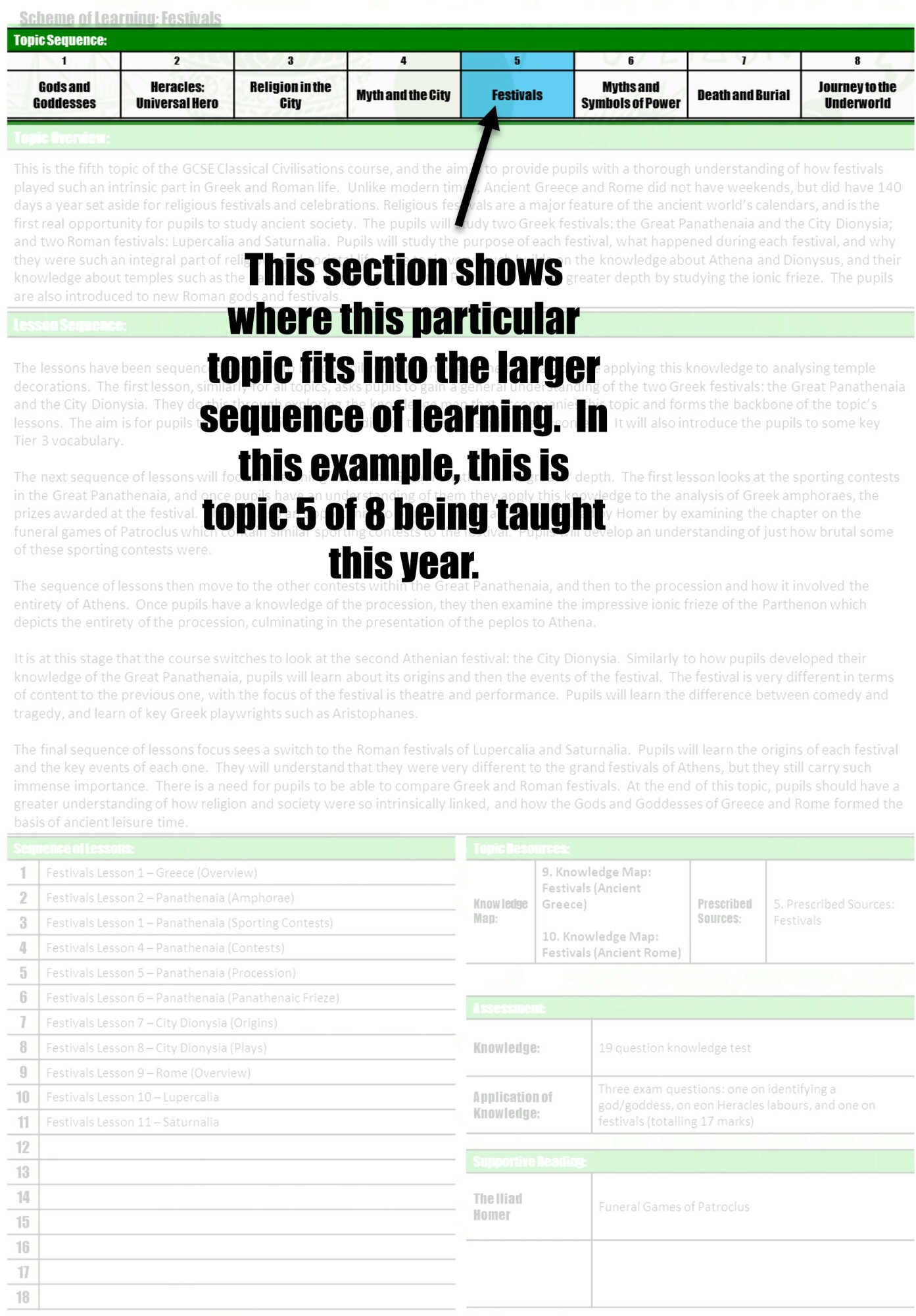 The topic summary gives an overview of the topic being studied, an outline of the lesson sequence, and an outline of accompanying resources such as recommended reading. The aim of this single page summary of each topic is to give pupils and parents a greater overview of learning in a subject and how it is all linked. We think by understanding the bigger picture of what will be studied, it will be easier for pupils to understand their current learning, and for parents to be able to support them.